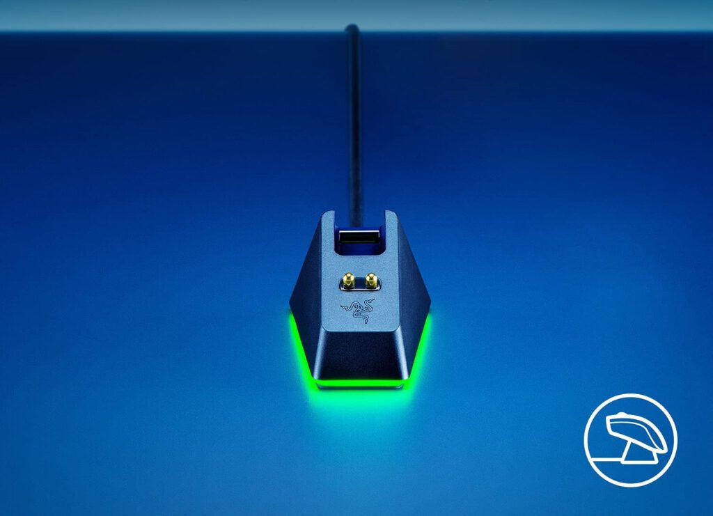 می توانید از پایه شارژ برای پر کردن باتری ماوس خود و افزایش دسترسی دانگل بی سیم USB خود استفاده کنید. همچنین می توانید به Razer Synapse متصل شوید و Razer Viper Ultimate خود را روی پایه شارژ قرار دهید تا وضعیت فعلی باتری ماوس را مشاهده کنید.